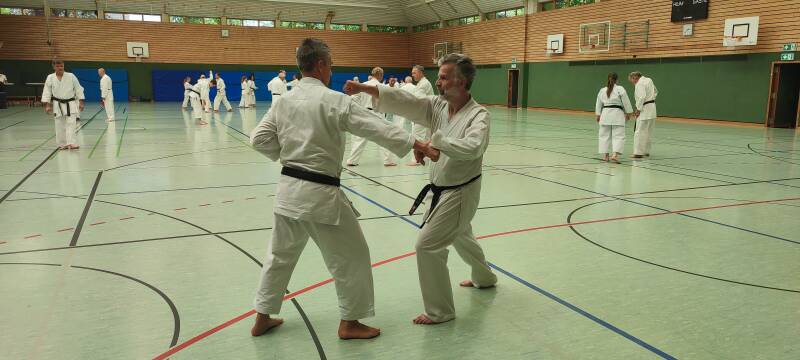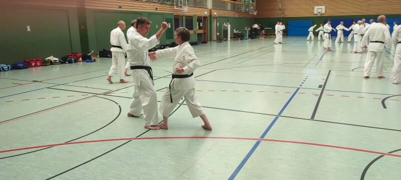 Wie jedes Jahr fand im Budoclub Karlsruhe ein Lehrgang mit Udo Boppré, 7. DAN statt. Thema des Lehrgangs für 9. - 4. Kyu war 'Schnelligkeit durch Entspannung'. Ab 3. Kyu wurden Bunkai und Bunkai Drills der Kata Tekki Shodan erlernt und im Partnertraining gefestigt.